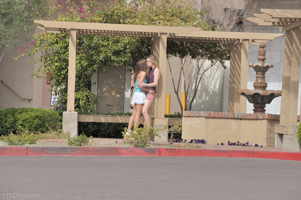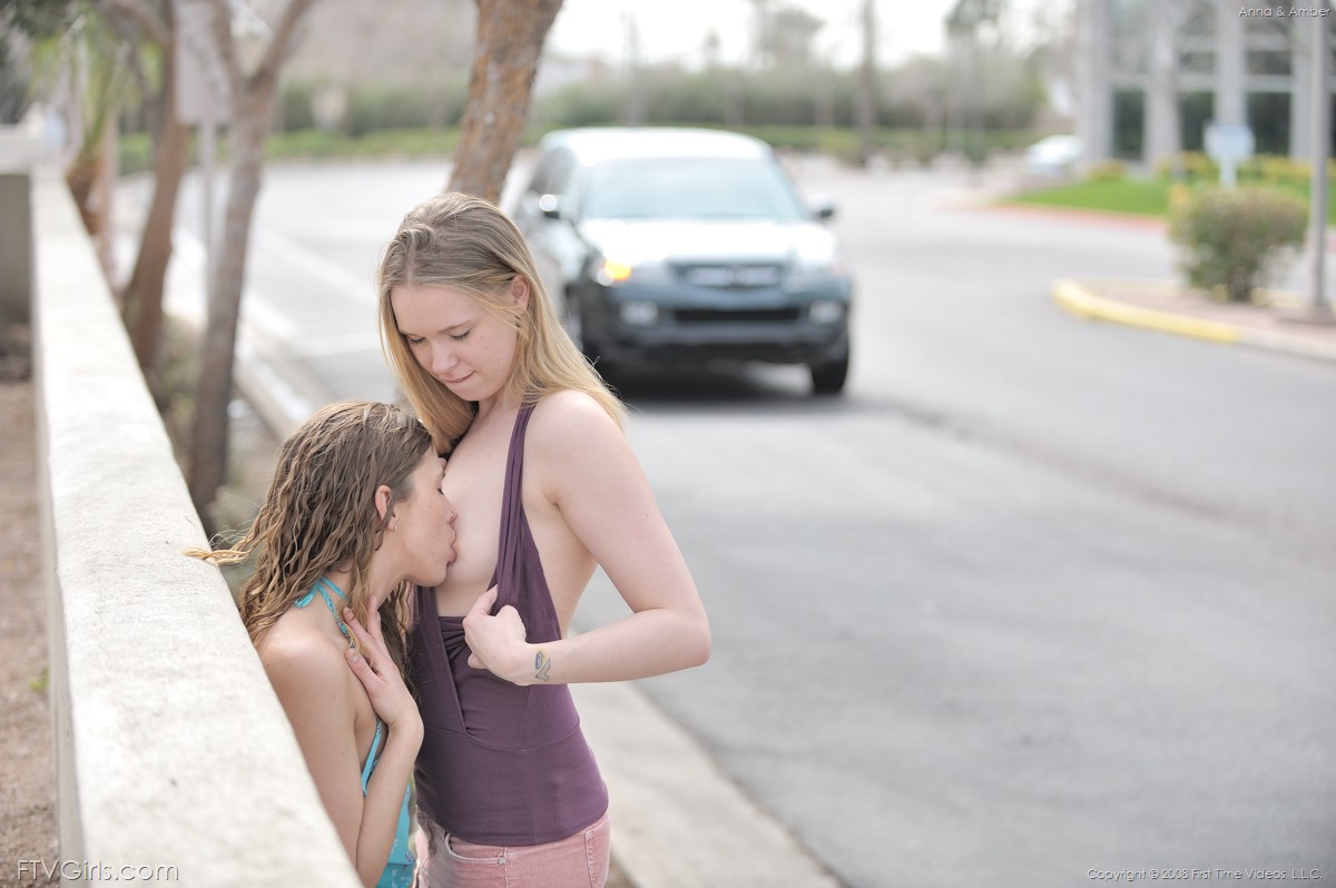 Две лезбухи Анна и Эмбер лижет друг дружке посреди улицы