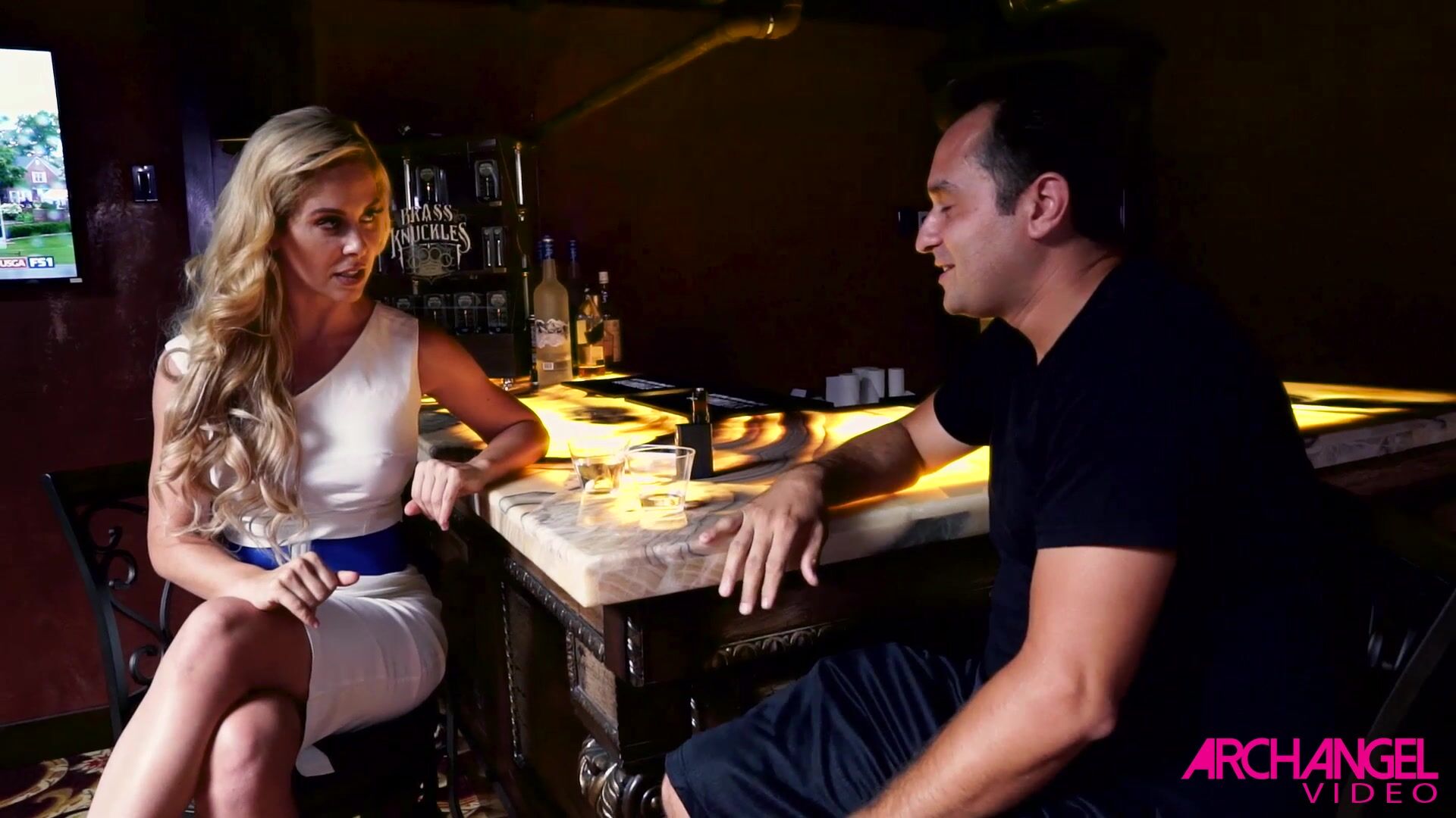 Пока муж играл в покер с мужиками Cherie DeVille сиделя за барной стойкой и попивала коктейль. Когда игра закончилась, у мужа не было денег что бы расплатиться с партнерами и по этому он решил отдать свою жену за долги.